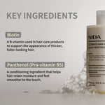 A B‑vitamin used in hair-care products to support the appearance of thicker, fuller-looking hair.